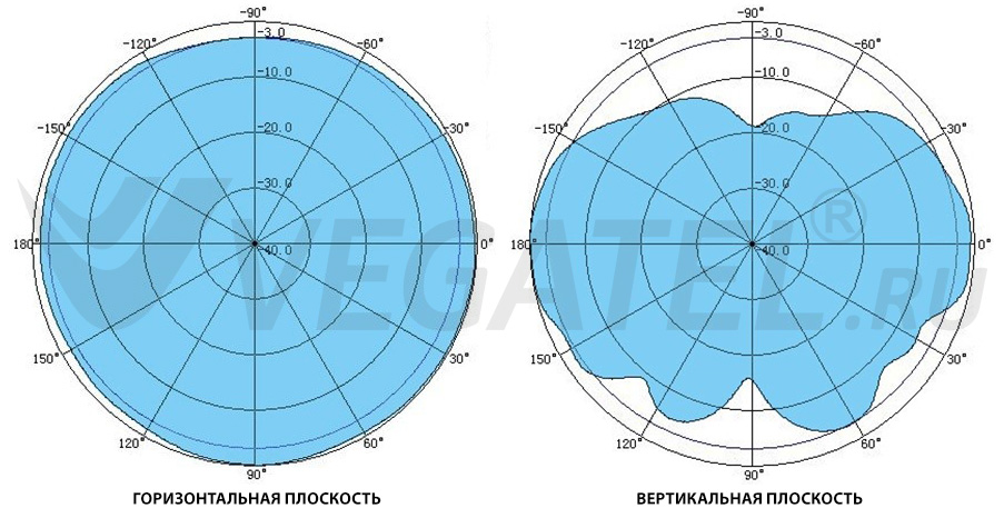 | Сектор излучения в горизонтальной плоскости | 360° |
