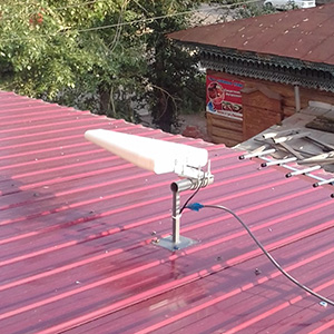 - Всепогодную антенну крепить только на штатный разъем, основание располагать строго вертикально, а узкий конец направлять точно на вышку сотовой связи, подняв по возможности выше – в идеале на крышу здания, в крайнем случае – на стену со стороны вышки.