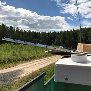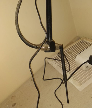 Положил антенну на крышу туалета, прижал бруском и порядок!