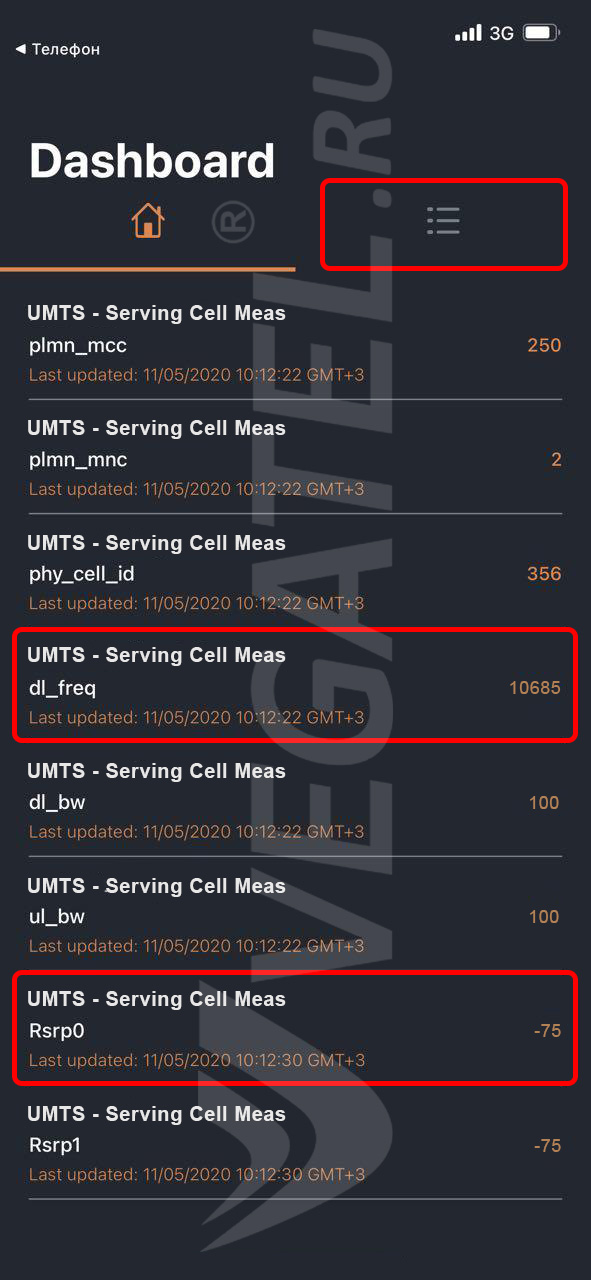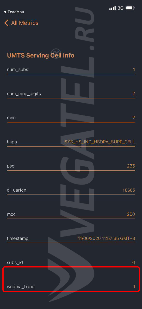 UMTS - Serving Cell Info (dll_freq): 10685 – Номер подключенного канала: