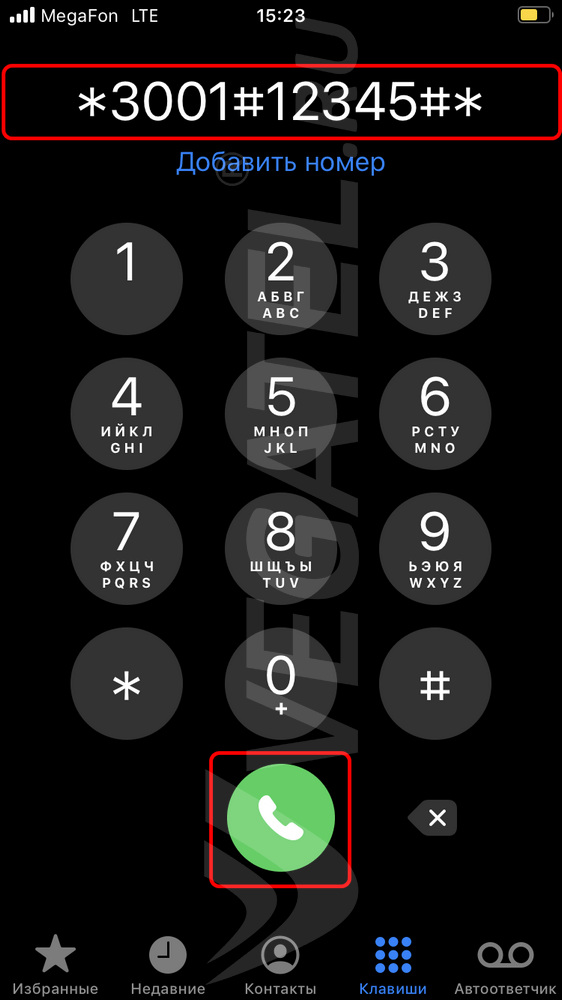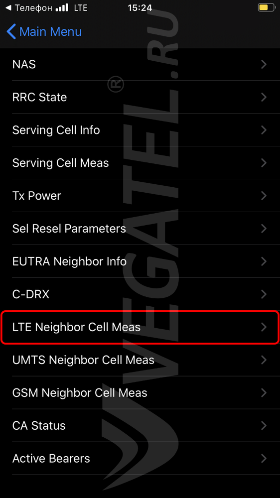 Сначала отключите wi-fi. Убедитесь, что телефон работает в режиме 4G (значок 4G, LTE на телефоне). Наберите код *3001#12345#* и нажмите зеленую кнопку «позвонить». Так вы попадете в инженерное меню iPhone: