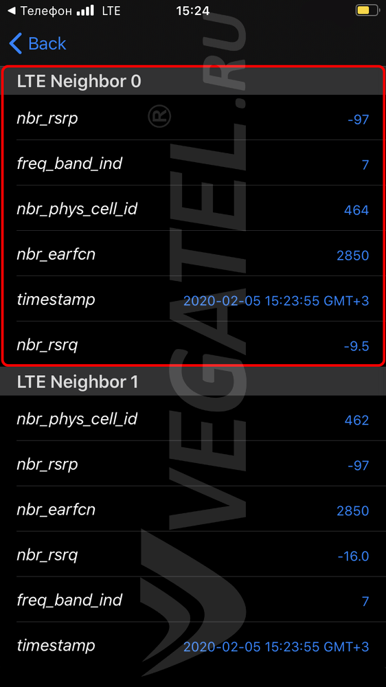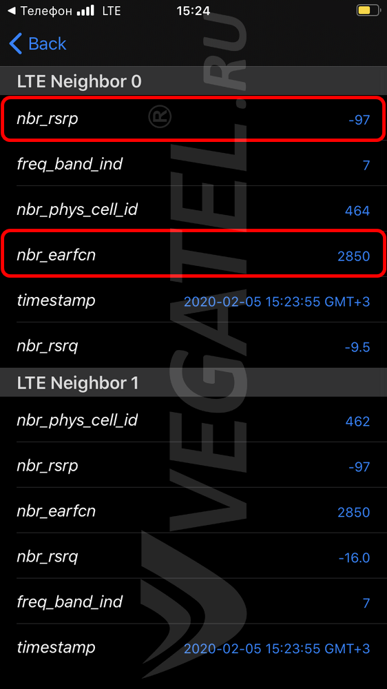 NBR_EARFCN: 2850 – Номер подключенного канала: