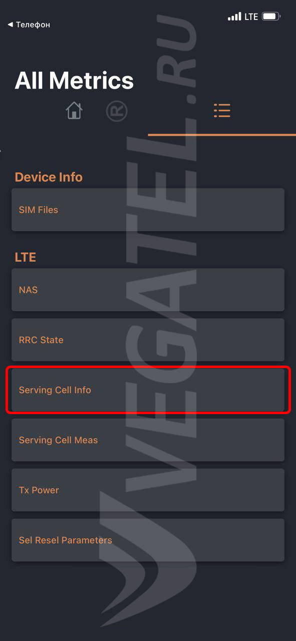 Нажимаем на «Serving Cell Info»: