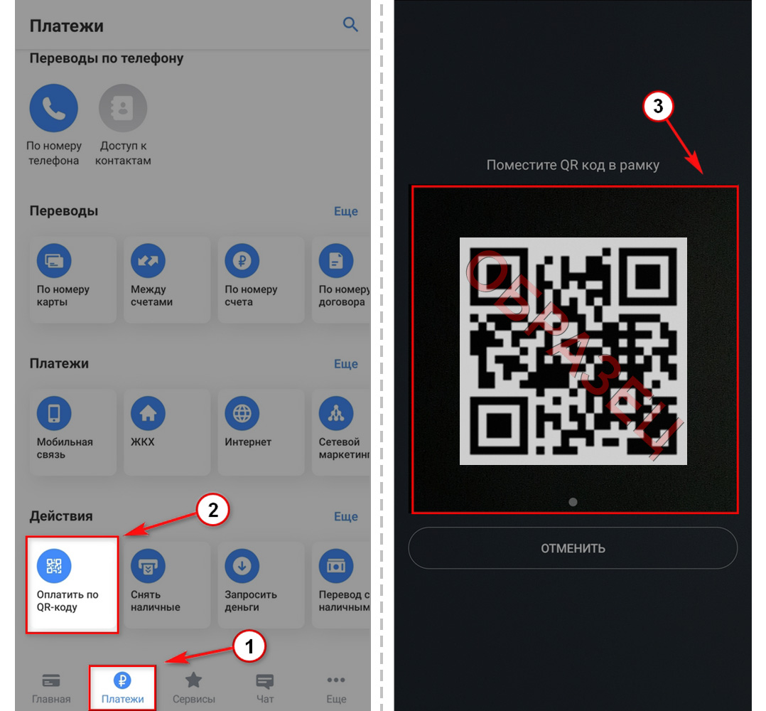 ШАГ 2. Выбираем «Оплатить по QR-коду»