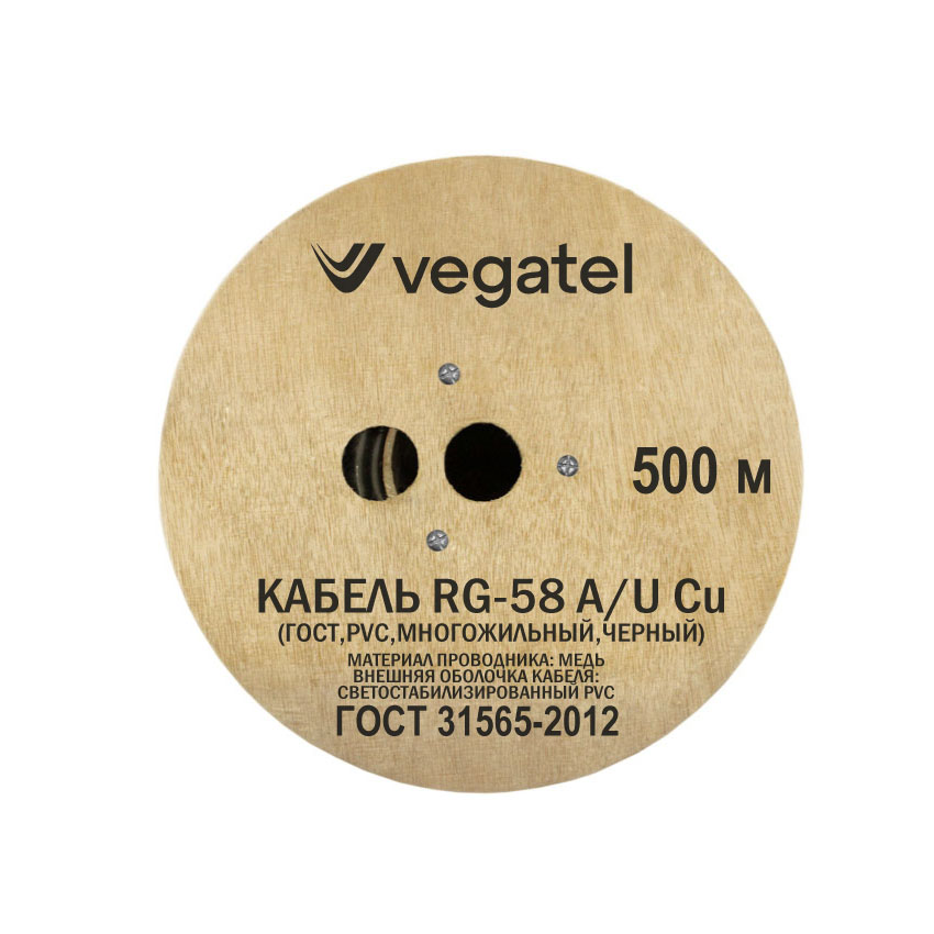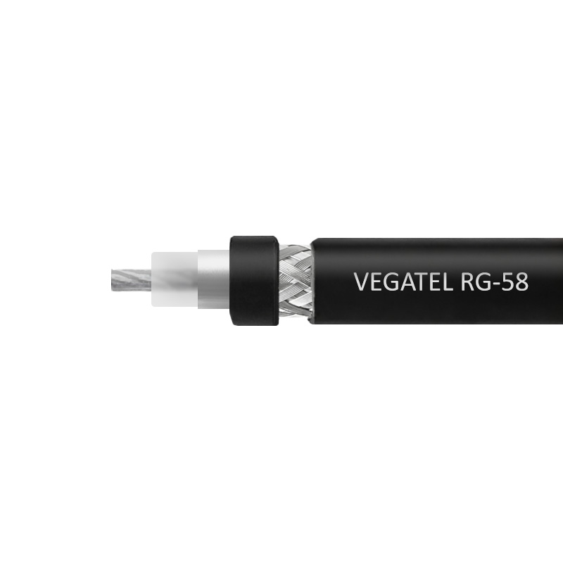 Центральный проводник является многожильным и состоит из чистой меди, покрытой слоем олова. Благодаря этому обеспечиваются низкие потери сигнала и высокая механическая прочность. Сочетание двухслойной фольги на лавсановой основе (основной экран) и внешней оплётки высокой плотности позволяют обеспечить хорошую помехозащищённость. Кабель обладает хорошей гибкостью и прочностью. Внешняя оболочка выполнена из светостабилизированного поливинилхлорида (PVC). Наличие этого сертифицированного материала позволяет использовать Кабель VEGATEL RG-58 A/U Сu (ГОСТ, PVC, многожильный, черный) в местах массового скопления людей (торговые/бизнес центры, магазины, офисы).