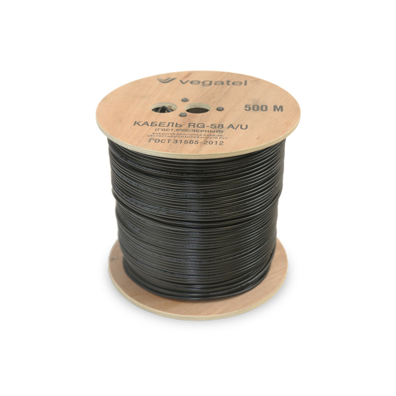 Центральный проводник выполнен из омеднённой стальной проволоки. Благодаря этому обеспечиваются низкие потери сигнала и высокая механическая прочность. Сочетание двухслойной фольги на лавсановой основе (основной экран) и внешней оплётки высокой плотности позволяют обеспечить хорошую помехозащищённость. Кабель обладает хорошей гибкостью и прочностью. Внешняя оболочка выполнена из светостабилизированного поливинилхлорида (PVC). Наличие этого сертифицированного материала позволяет использовать Кабель VEGATEL RG-58 AU (ГОСТ, PVC, черный) в местах массового скопления людей (торговые/бизнес центры, магазины, офисы).